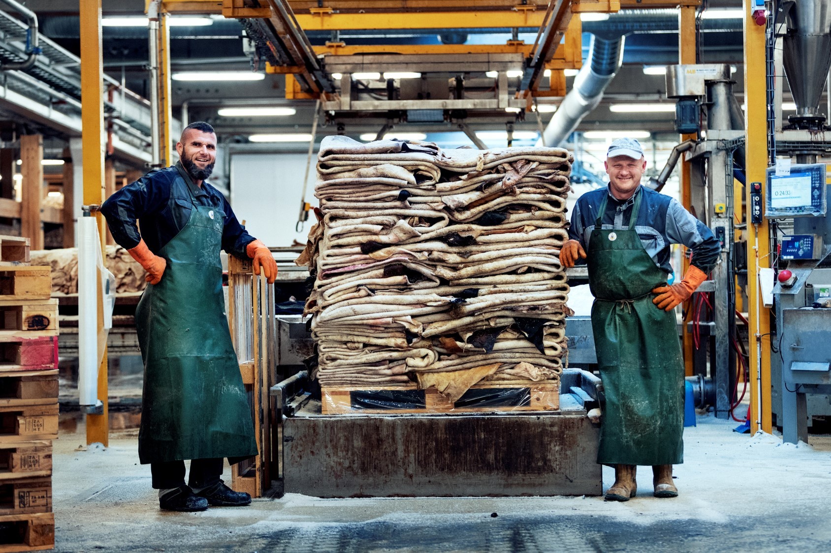 To ensure that our customers receive quality products, significant investments have been made at the production facilities where our hides and skins are refined: Norilia's hide plant in Skjeberg, Norway, and Himmerlandskød's hide plant in Rødkjærsbro in mid-Jutland, Denmark. Shortly after pulling, hides are chilled to just above freezing. The hides remain continuously chilled until they reach the hide plant in Skjeberg. Here, hides are trimmed, graded, and, when relevant, salted. Our skins are also removed with a hide puller and immediately drum salted in the abattoir. Grading of skins takes place at Skjeberg.